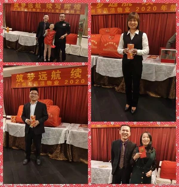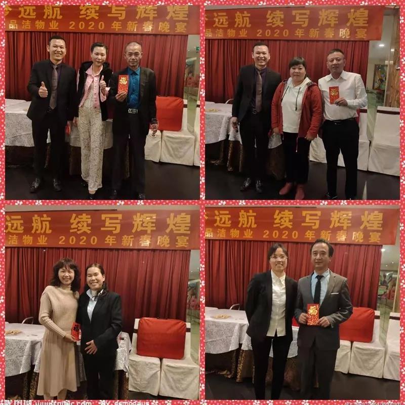 欢乐过新年,品洁灿九天;金鼠腾玉宇,祈福笑靥甜。1月11日,品洁物业2020年度新春晚宴在佛山大型商务酒店隆重举行。在晚宴之前,对2019年度工作进行了总结,对2020年工作进行了统一规划和部署。公司总经理谢桂钦先生、公司副总经理肖菊竹女士及行政人事、运营部、项目主管、区域经理等管理层人员参与了会议与晚宴。